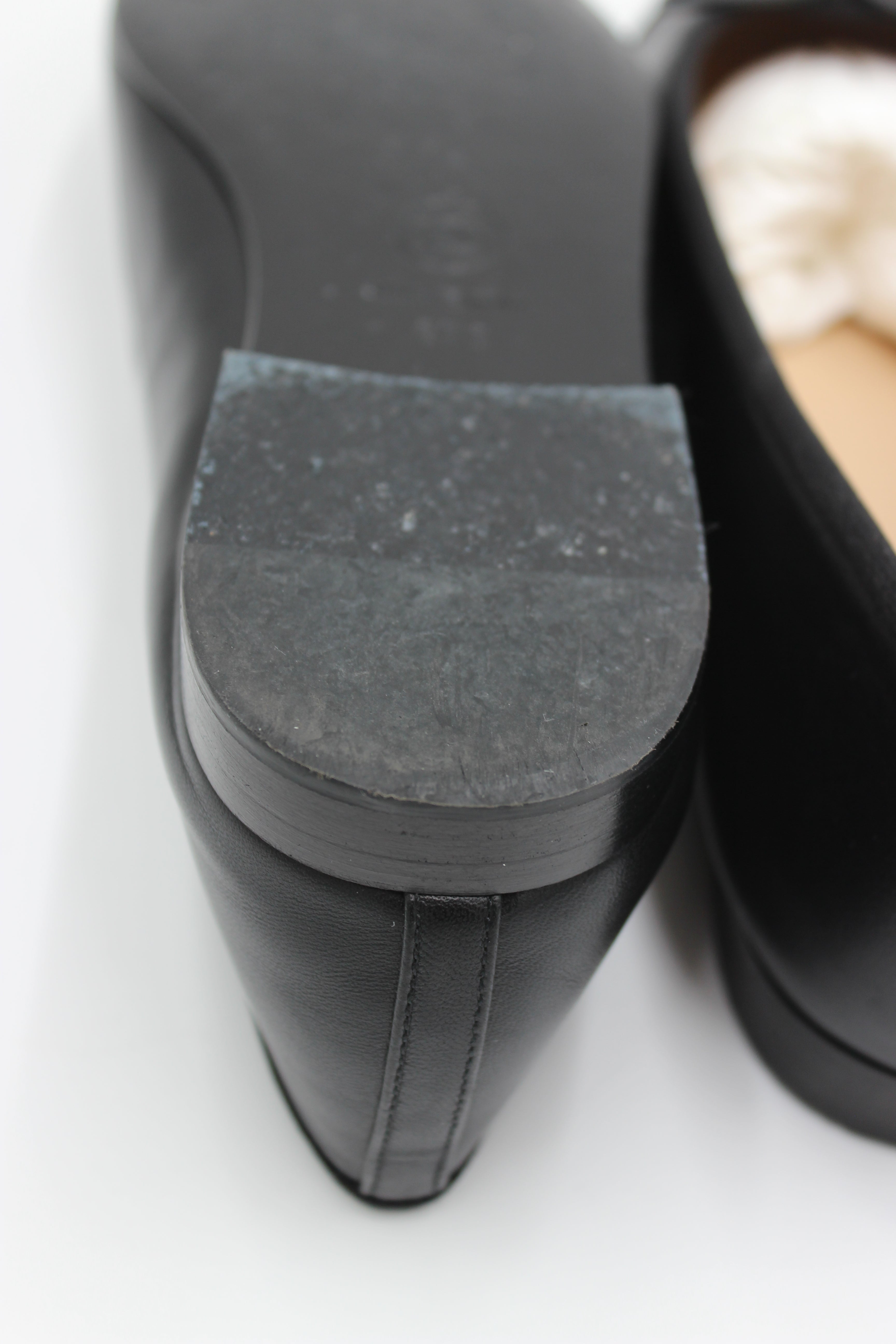 Modellen er udført i smukt, sort læder med den ikoniske lak-snude prydet med det diskrete CC-logo og den fine sløjfe-detalje.