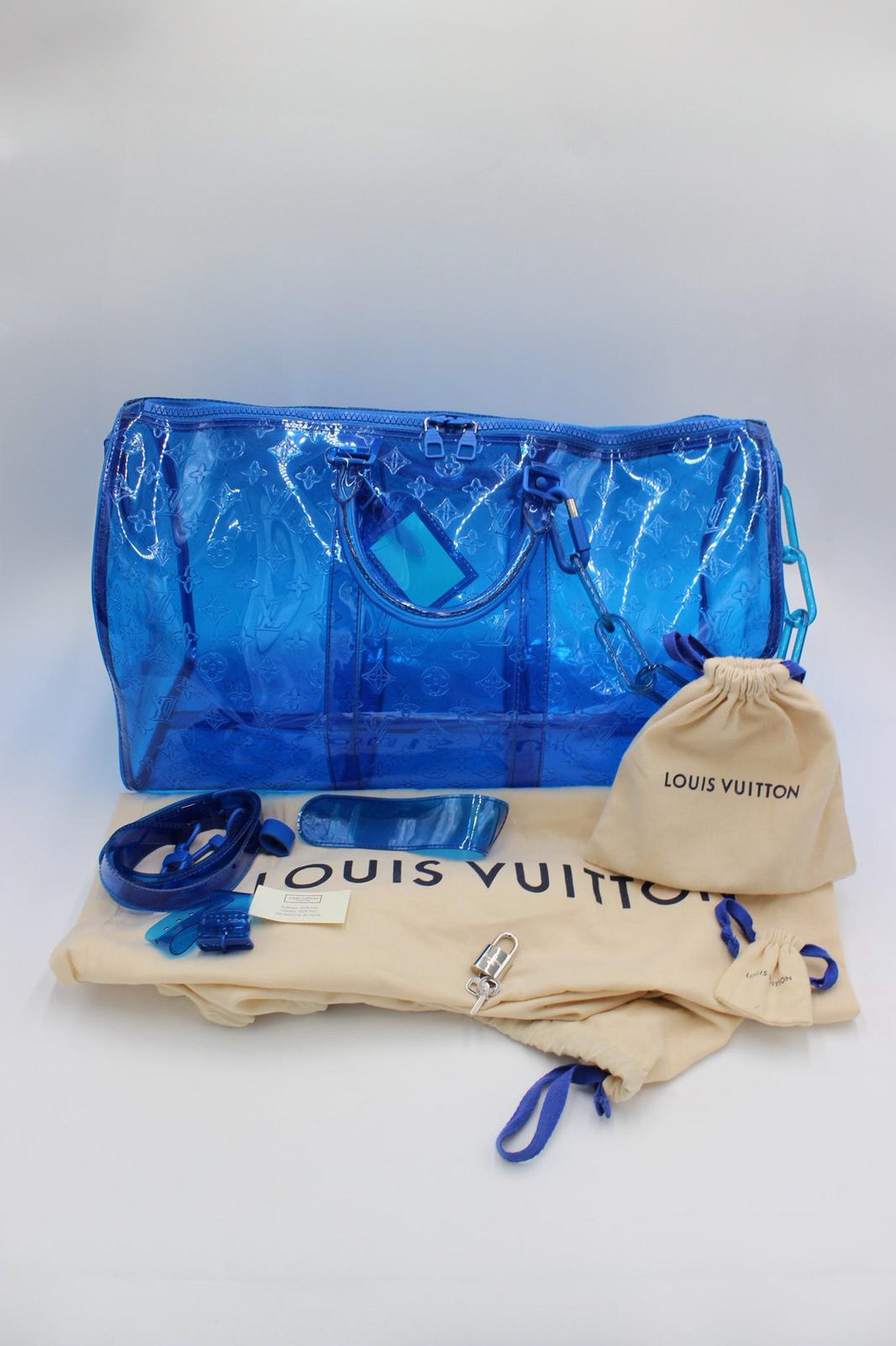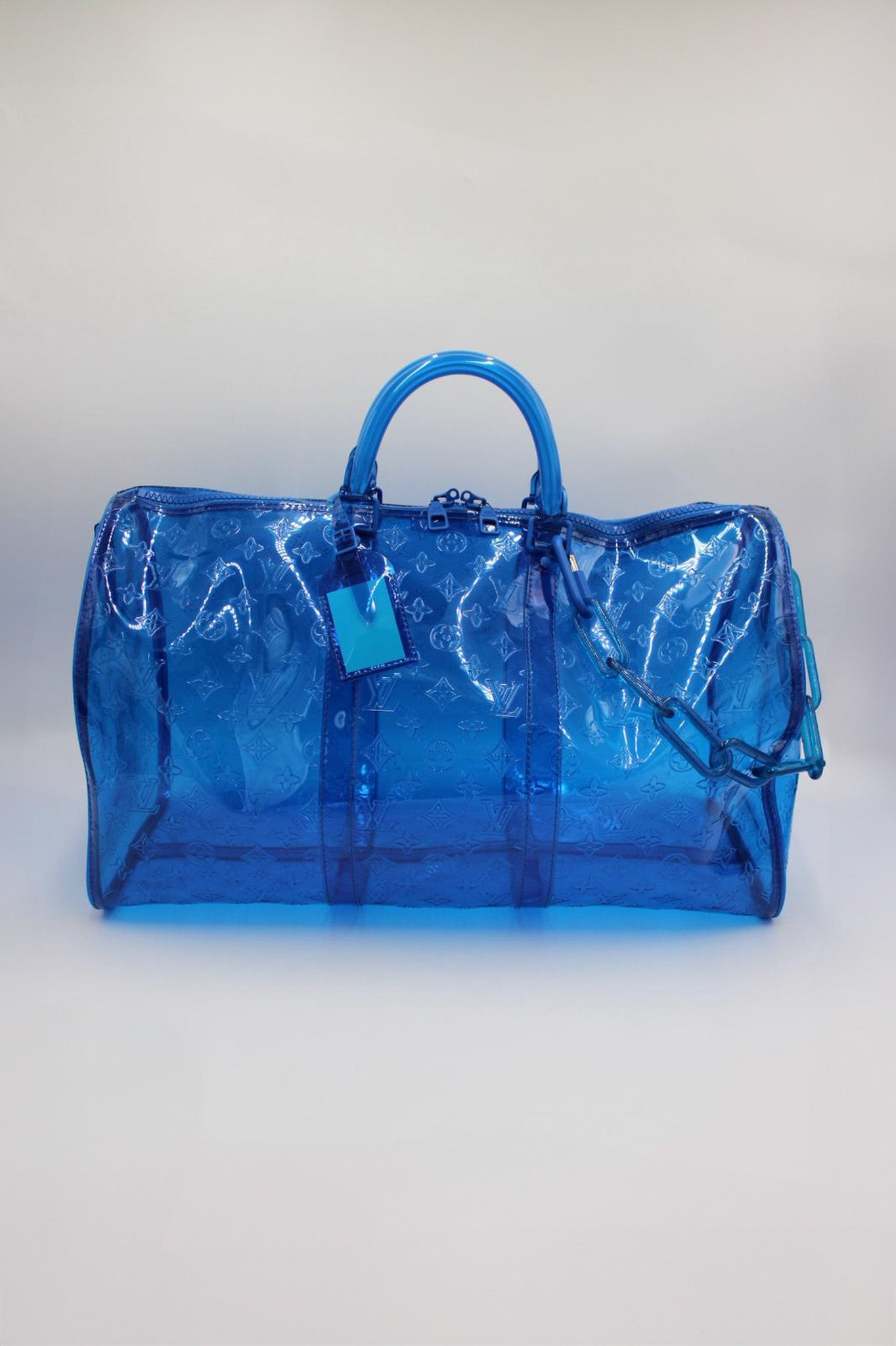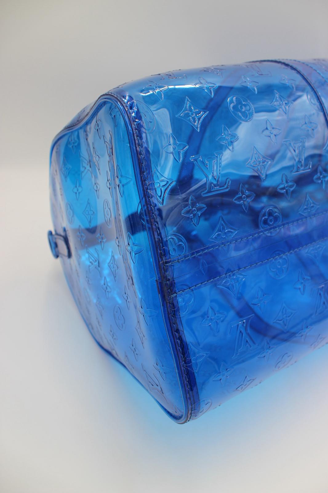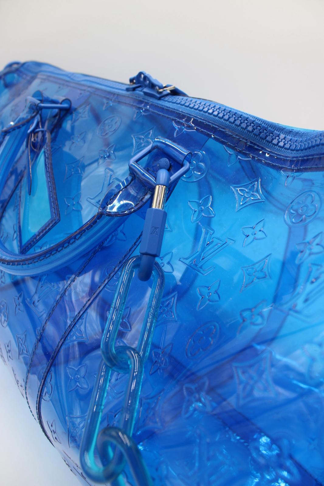 Om tasken: En moderne og ikonisk fortolkning af den klassiske Keepall, designet af Virgil Abloh for Louis Vuitton under hans debutkollektion i 2019. Den gennemsigtige blå udgave er en af de mest eftertragtede versioner og repræsenterer perfekt Ablohs leg mellem luksus, innovation og streetwear. Et ægte samlerobjekt for modeelskere og LV-entusiaster.