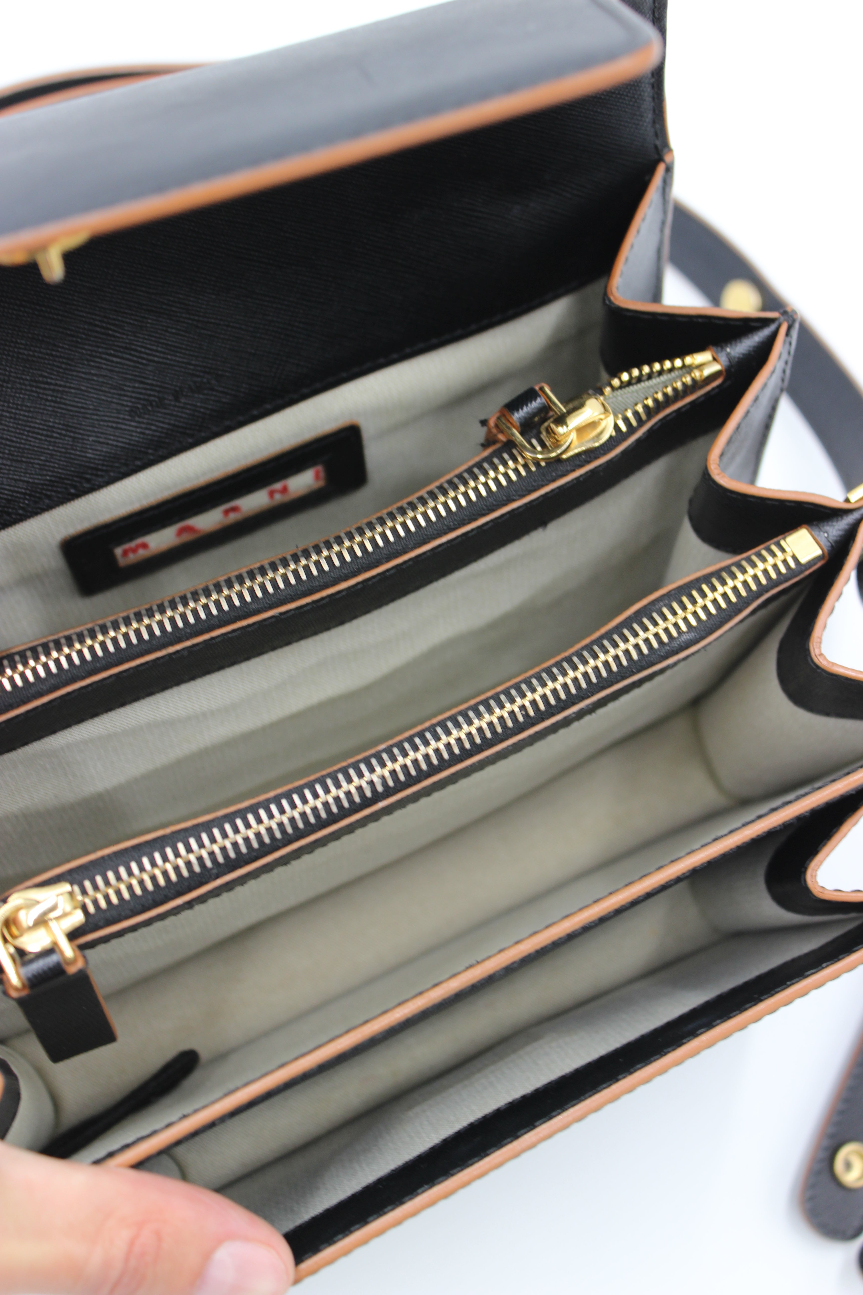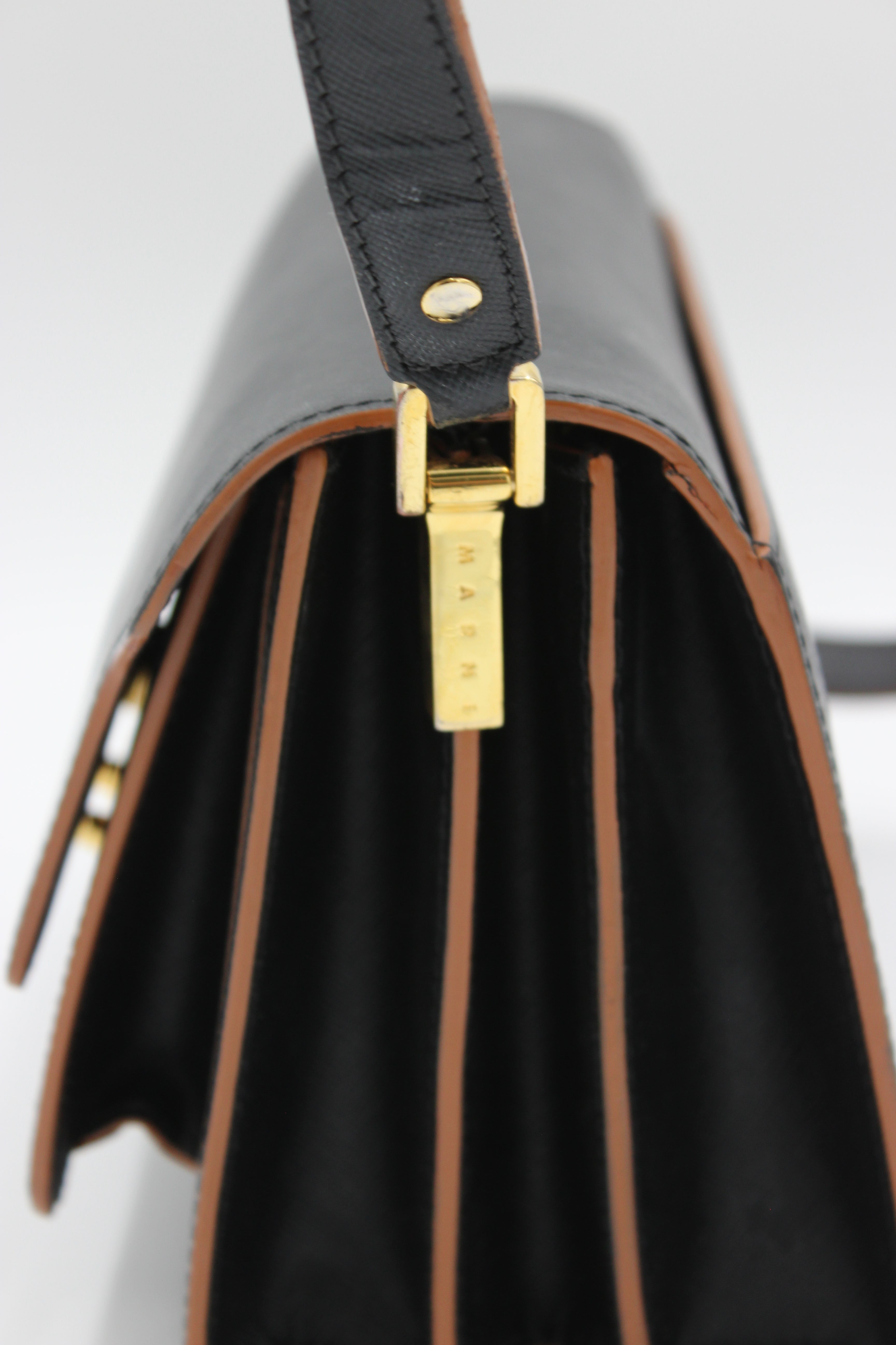 Om tasken: Marni Trunk Bag blev introduceret som en moderne fortolkning af den klassiske skuldertaske – funktionel, struktureret og med et arkitektonisk udtryk, der hurtigt gjorde den til et modeikon.